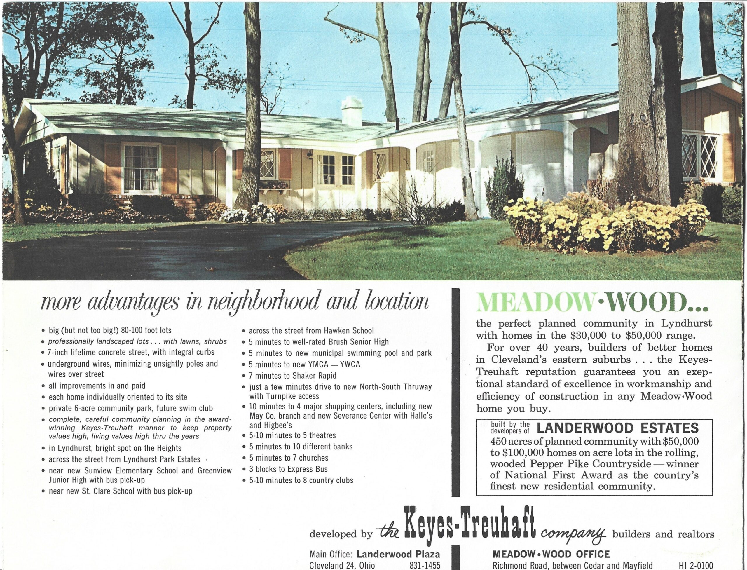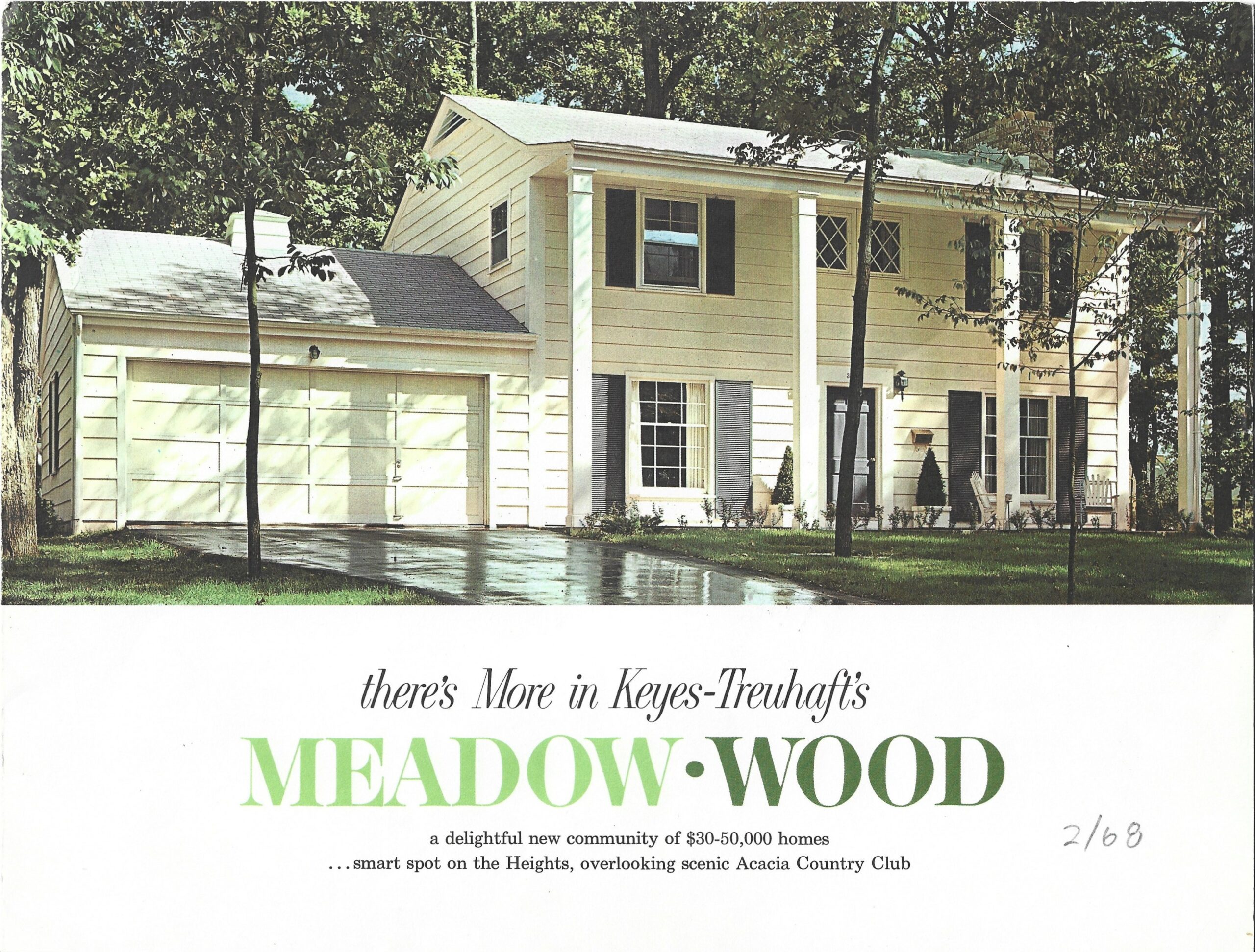 Development of the Meadow Wood subdivision began in the early 1950s when the Keyes-Truehoft Company, a prolific Cleveland area builder, started developing the land. The first 50 homes, located on Dogwood Trail and Harwich Lane, were completed in 1956.